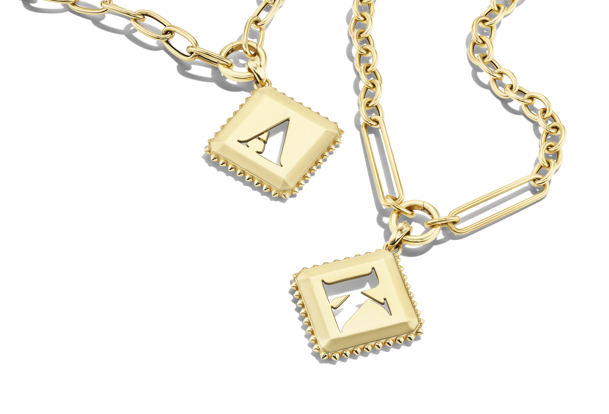 Every letter is rendered in a sculptural “toy block” design, framed by AnaKatarina’s signature gold spikes — a distinctive blend of nostalgia and modern sophistication.