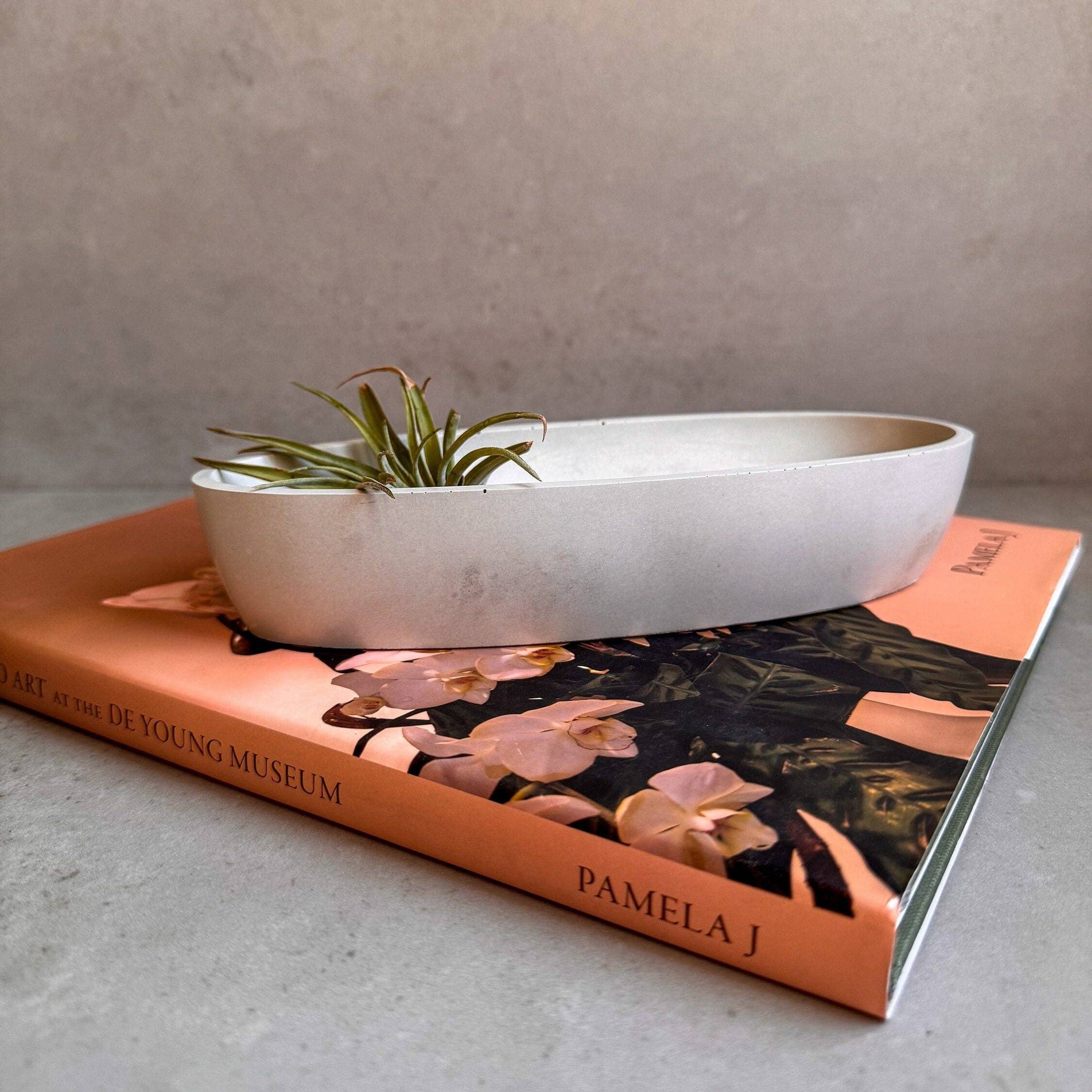 Oval Concrete Tray, Decorative Boat Tray, Trinket Trough, Minimalist Cement Tray, Coffee Table Display, Jewlery Dish, Bathroom Tray: Small (8.4” L)