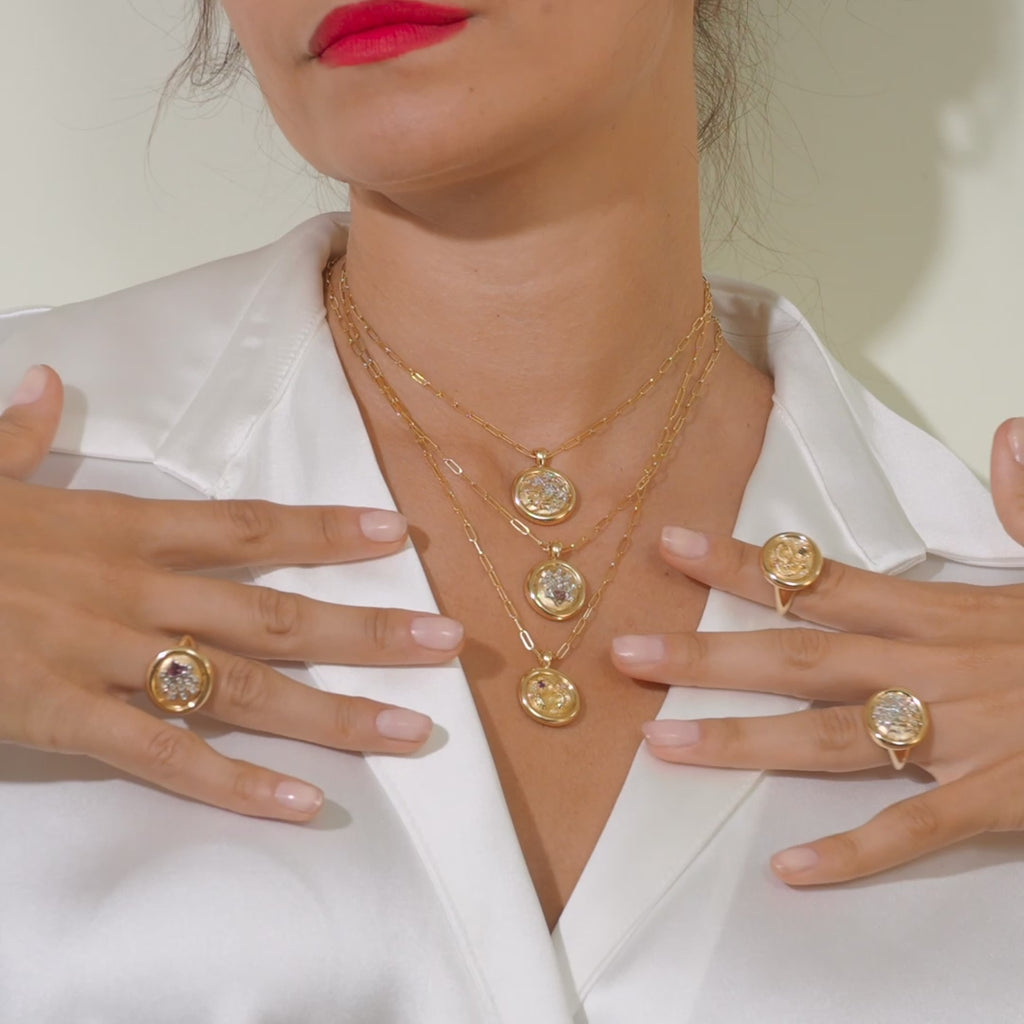 Historically, signet designs were worn to stamp a seal into wax, representing identity and authority. Reimagined as a necklace, this piece transforms that tradition into a modern talisman — allowing the wearer to carry the power of their intention close to the heart.